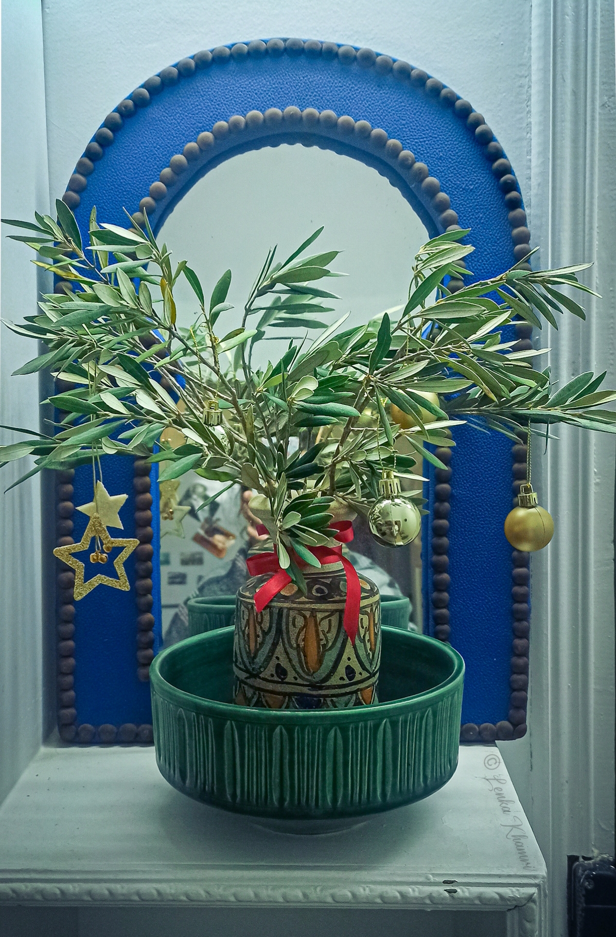 U nás všechno začíná výpravou na borovicové chvojí a šišky, abych mohla vyrobit adventní věnec. Ten tu k dostání není. Stromeček máme umělý, koupený v Tunisku, a ozdobený ozdobami dovezenými z ČR. Jsou bohužel umělohmotné, ty nádherné křehké foukané jsem se bála převézt, aby se během letecké cesty nestala třpytivá drť. Sice v Tunisku jsou vánoční ozdoby k dostání, ale buďto v naprosto pro mě netradičních barvách nebo v tristní kvalitě anebo nádherné a kvalitní, zato šíleně drahé.