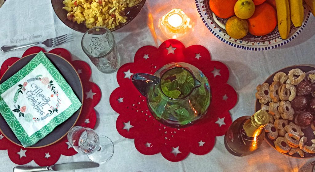 Samozřejmě vánoční i novoroční oslavy záleží na „nátuře“ společnosti, ve které se pohybujete – v některých rodinách se neslaví nic, někde všechno. Pokud se do tuniské rodiny přivdá nebo přižení někdo odjinud, obvykle sebou přinese své tradice a zvyky (přeci jen je to součástí každého z nás), a pokud má rodina otevřenou mysl, slaví všechno dohromady. Už jen jako projev vzájemné úcty a respektu.