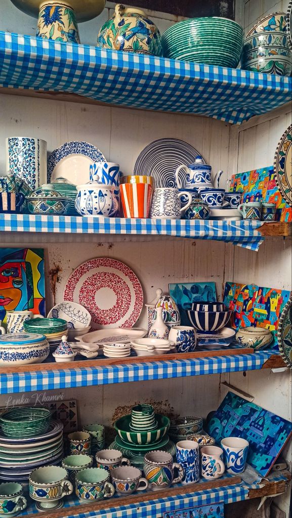 V Tunisku naplno propukla moje vášeň pro vzory a ornamenty. Obzvlášť malé barevné kachličky jsou čirá závislost! Jsou všude – na fasádách domů, na sloupech, na zdích a stěnách nebo v nejrůznějším provedení jako dekorace. Moje nejoblíbenější jsou podlahy a desky stolů kreativně dekorované rozlámanými kachličkami – vždy neopakovatelné a jedinečné. Z neskutečně pracných a precizně poskládaných mozaiek by si mohla moje trpělivost vzít příklad. K obdivování tu jsou i detaily ručně vyráběné keramiky a ručně tkaných koberců i výšivek na tradičních krojích a slavnostním oblečení. Všechna ta ruční práce, nápaditost a ležérní arabská záměrná nedokonalost má můj obdiv!