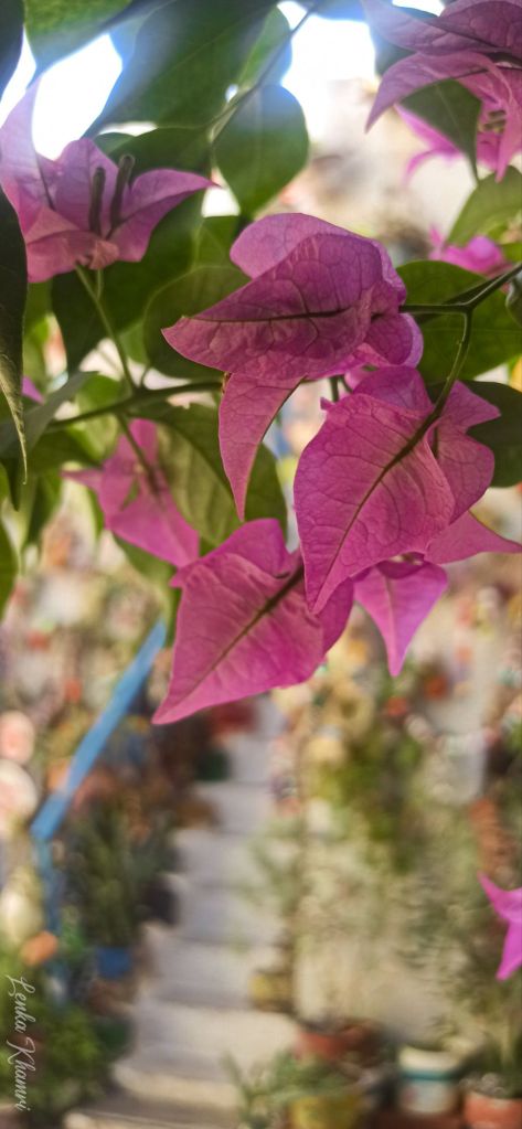 Růžová v nejrůznějších odstínech vás okouzlí na květech růží a na keřích všudepřítomné buganvílie.